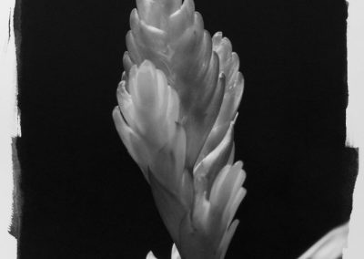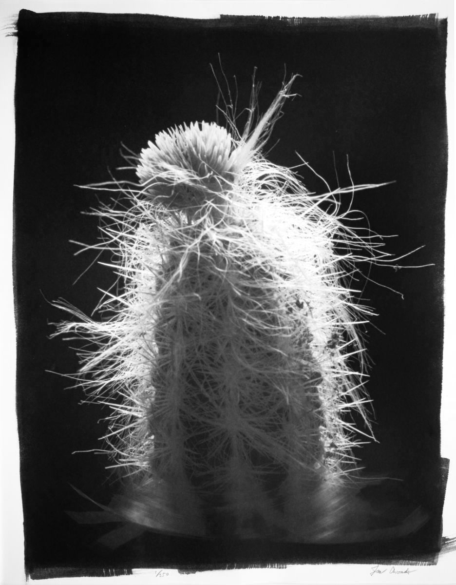 The images are hand-printed using the 19th-century developing-out platinum-palladium photographic process, which first involves hand-brushing the light-sensitive solution onto cotton-rag paper. In a deviation from the conventional process of exposing the sensitized paper by contact-printing with a large-format negative, I instead expose the sensitized paper using a novel scanning-laser system I developed.